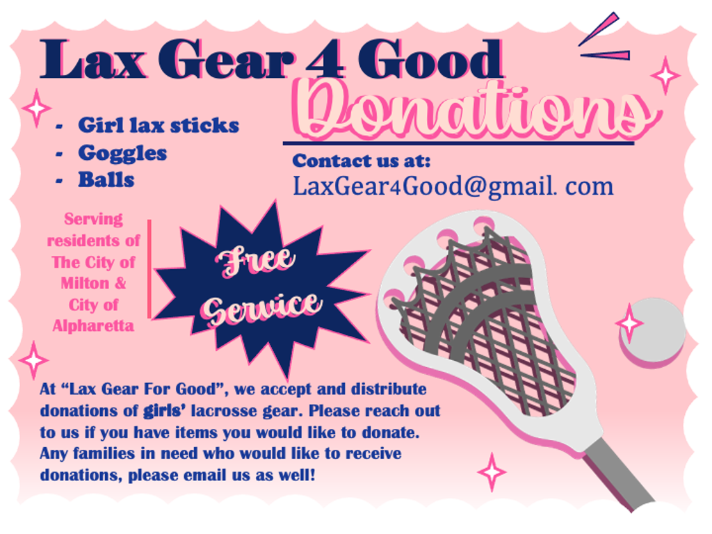 Please reach out to LaxGear4Good@gmail.com if you have used equipment you would like to donate for the cause or if you are a family that would like to accept items!